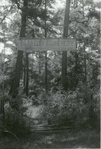 Two photographs taken in August, 1957 of the Blakeley Cemetery, now part of Historic Blakeley State Park north of Spanish Fort, Alabama. One picture shows the sign which reads "Blakeley Cemetery, Baldwin County Historical Society." The other picture is of grave markers. From the Fairhope Single Tax Corporation Archives, courtesy of the Ruffles Family.