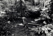 Photograph taken in August, 1957 of broken grave markers at the Blakeley Cemetery, now part of Historic Blakeley State Park north of Spanish Fort, Alabama. From the Fairhope Single Tax Corporation Archives, courtesy of the Ruffles Family.